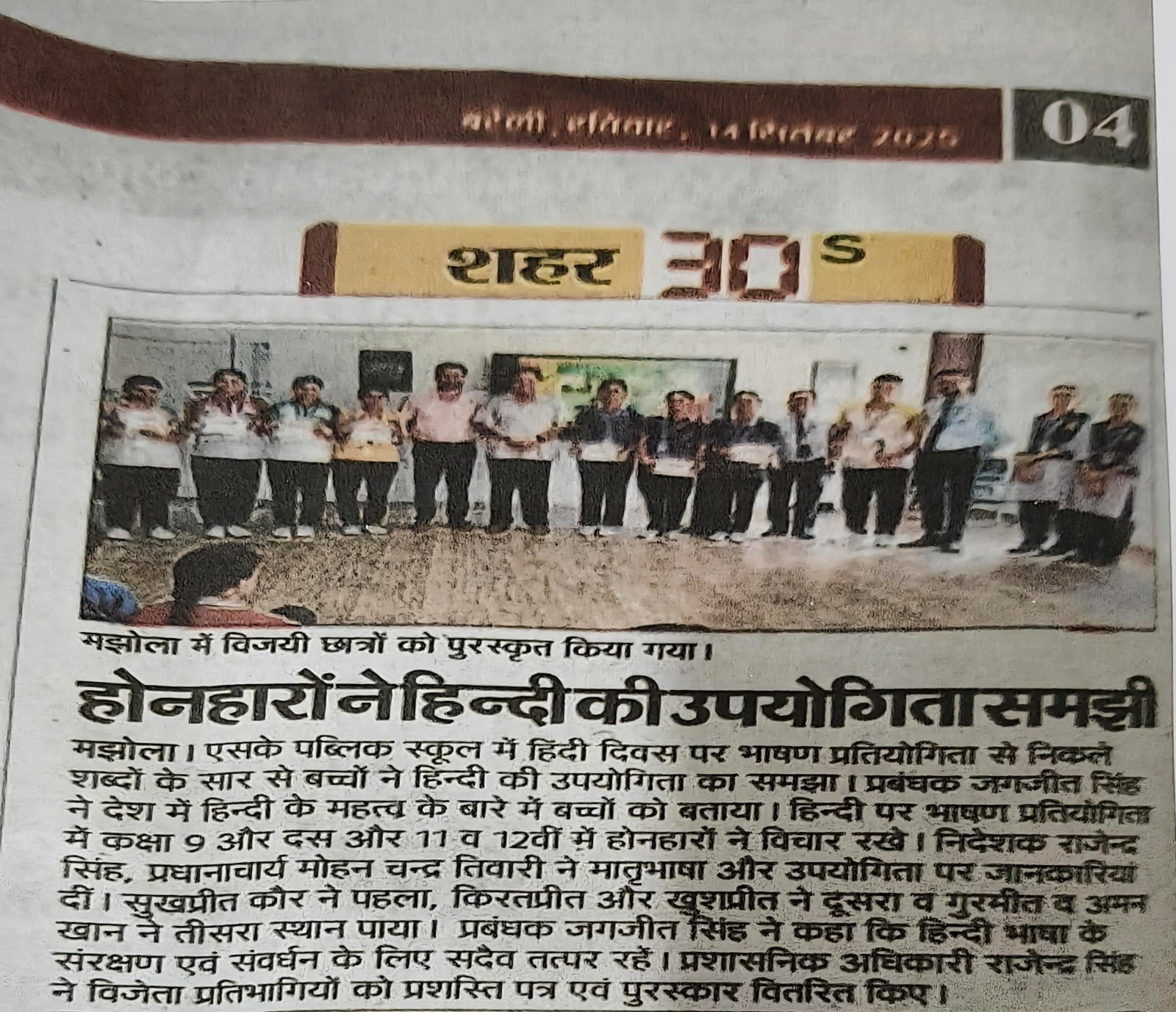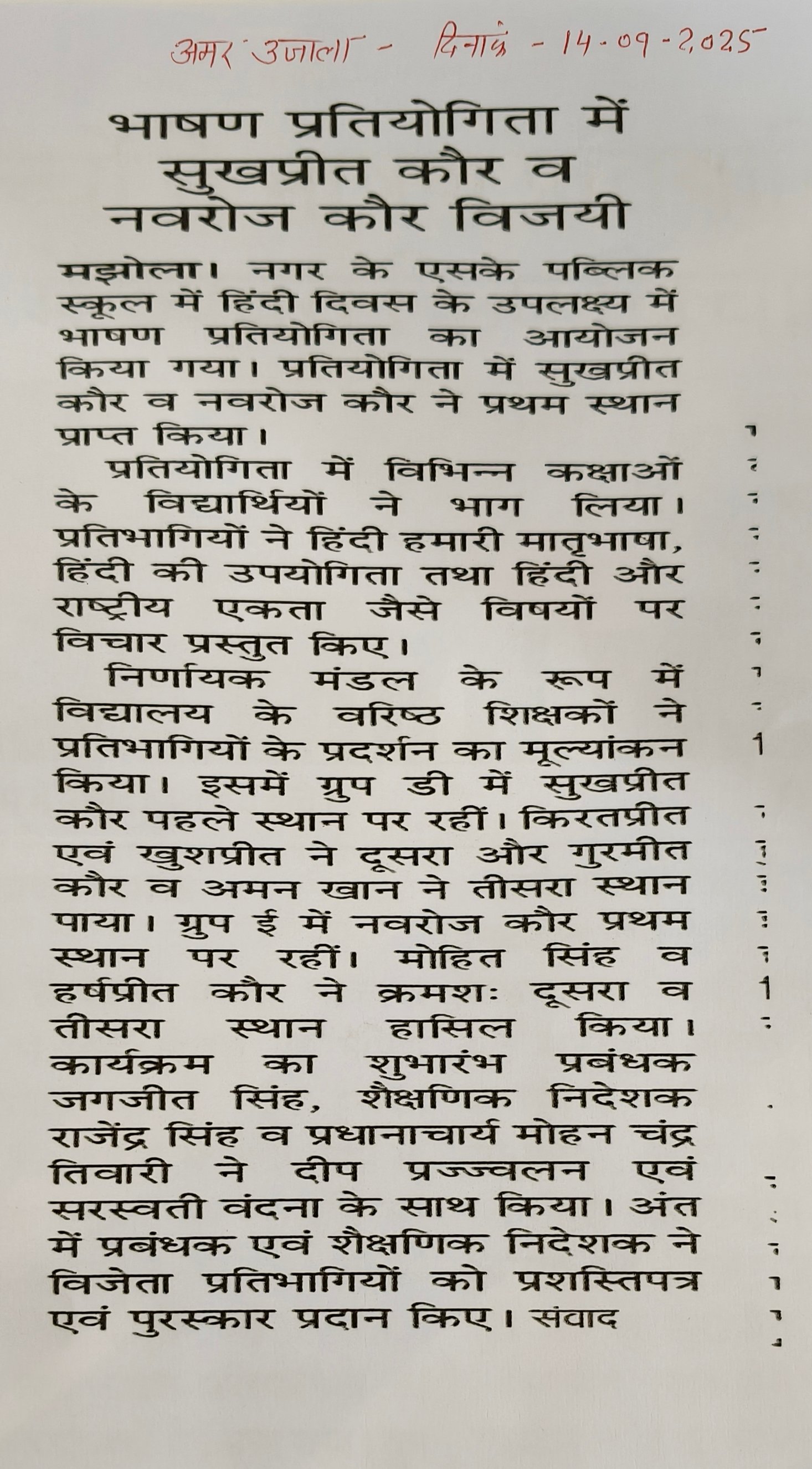 A HUGE congratulations to Miss Hargun Kaur (Class 11 Science) for clinching the FIRST POSITION!