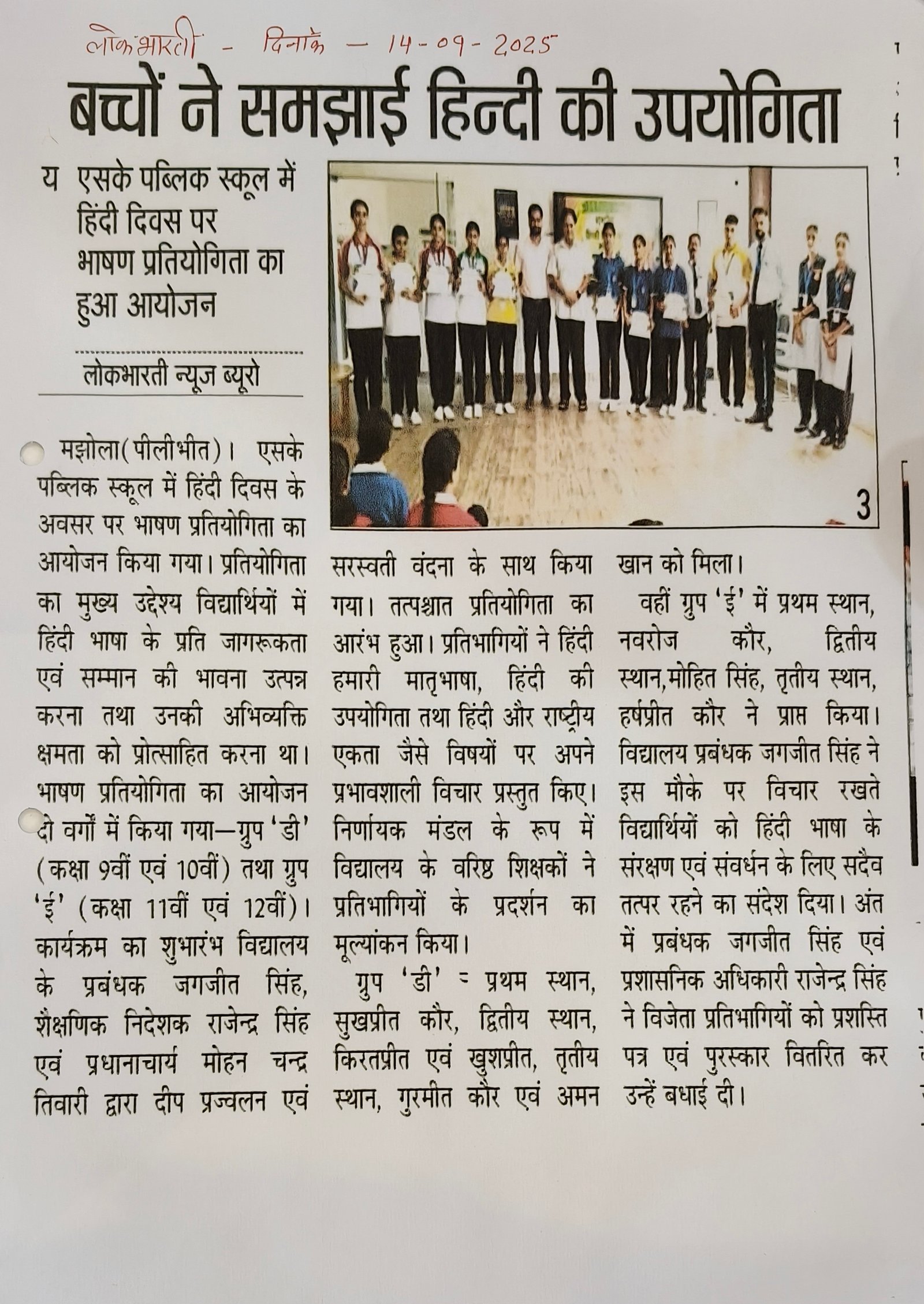 A HUGE congratulations to Miss Hargun Kaur (Class 11 Science) for clinching the FIRST POSITION!